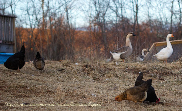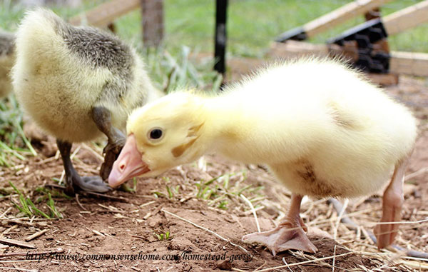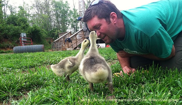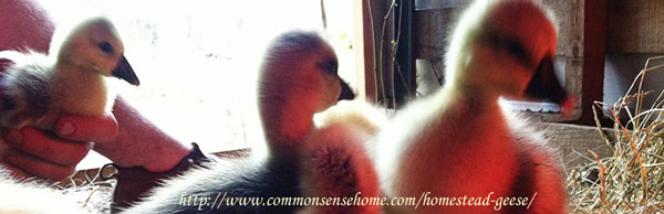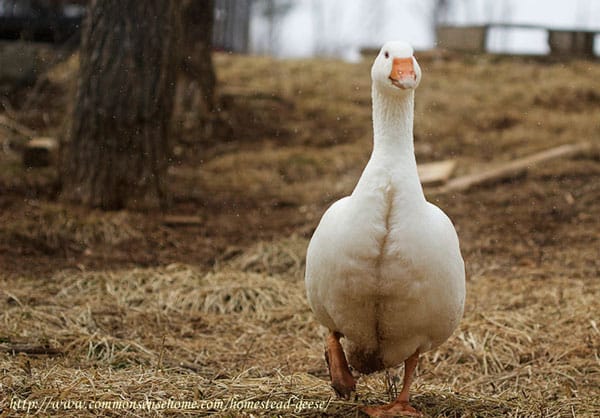 However, geese raised by you, from goslings (a young goose), can be as friendly as the family dog and twice as formidable when strangers or predators happen on to your homestead! There’s nothing quite like a group of 10+ lb birds rushing at you with wings spread, loudly honking their irritation at your presence. I know our UPS driver respects them, as do the hawks that fly overhead checking out our free range laying hens.