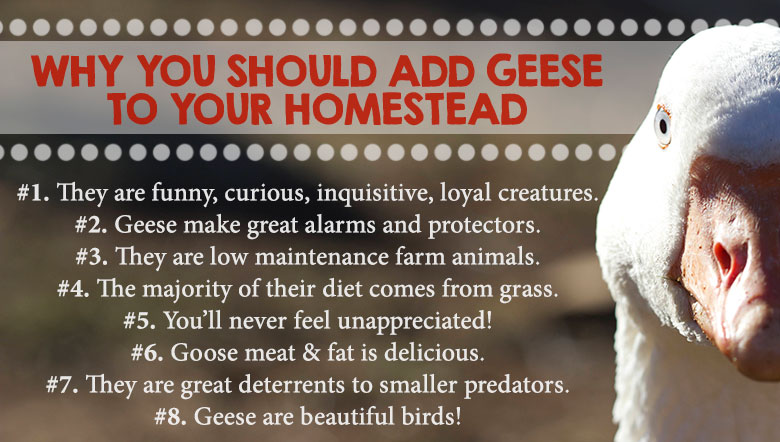 I’ve found The Small-Scale Poultry Flock by Harvey Ussery a great resource for geese and all backyard flock questions. More and more people are adding geese to their homestead flocks, so I’m sure more online information will be popping up on blogs and social media as well. There are quite a few posts about our geese experience on my blog, with these in particular recommended for the prospective goose owner: Goose Timeline: In Videos, A Gaggle of Geese: Why We Like Ours, and Goose: It’s What’s For Dinner.I will warn you that geese are QUITE loud, varying by breed, and messy. If those things bother you, it’s possible geese aren’t for you. But if all else fails, you’ve just raised up a Christmas goose for roasting, right?